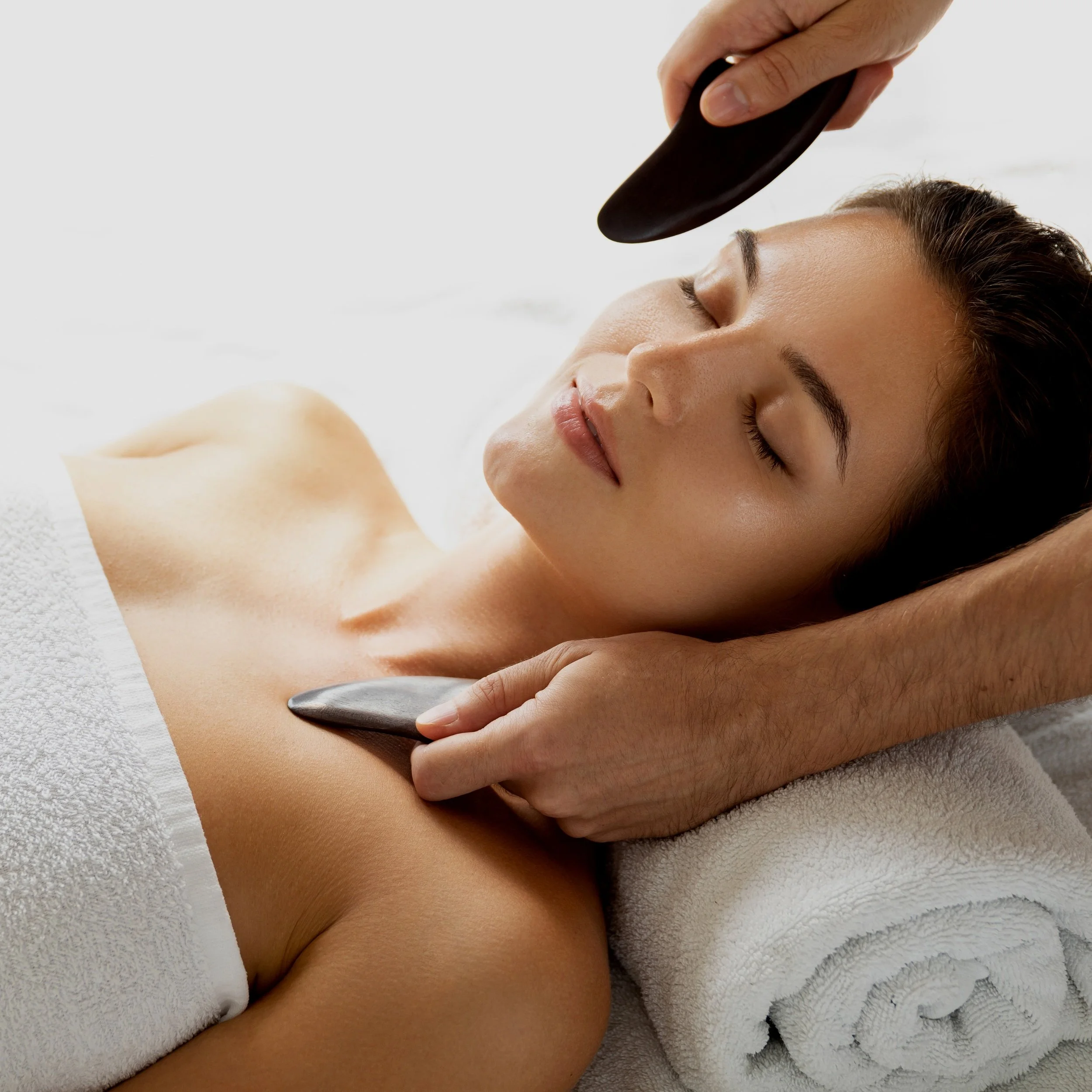 Derived from traditional Chinese medicine, Gua Sha promotes circulation, reduces inflammation, and restores skin's natural glow. It stimulates tissues, promoting lymphatic drainage and relieving tension.